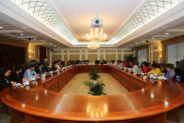 ? ? 2017年10月9日-12日,緬甸全國民主聯(lián)盟中央經(jīng)濟委員會(huì )常委U Soe Win、緬甸教育網(wǎng)主席U Nay Oke Tint一行18人組成的代表團來(lái)海螺創(chuàng )業(yè)訪(fǎng)問(wèn)調研。公司董事長(cháng)郭景彬、總經(jīng)理紀勤應率領(lǐng)導班子熱情接待了代表團一行。